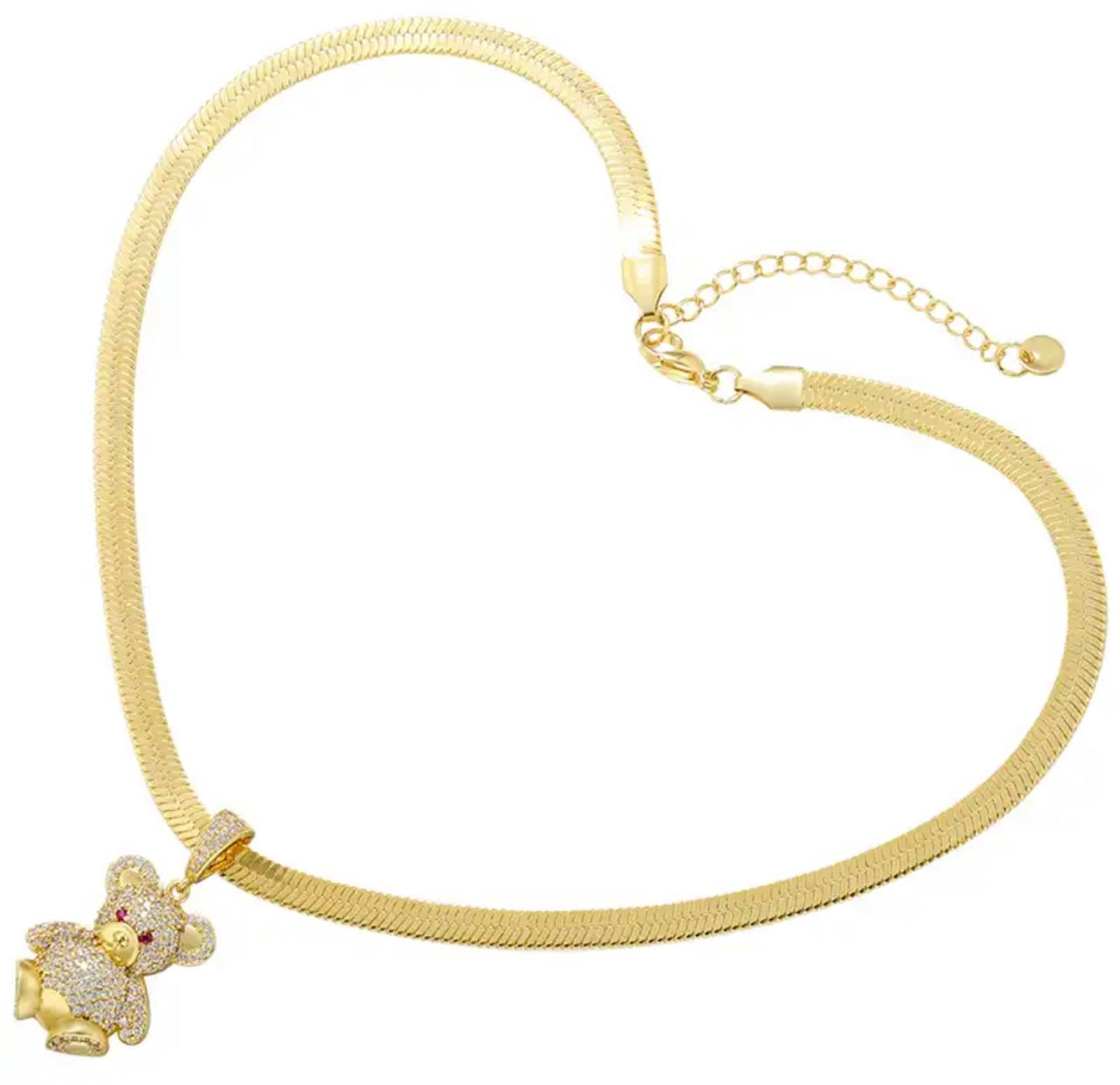 5mm stainless steel women necklaces Cute mini bear charms necklaces adjustbale